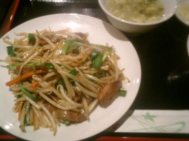 ラーメン屋と本格中華の中間ぐらい。中国家庭料理って書いてあるから、そんな微妙なとこなんでしょう。 メニューは他マーボー豆腐が500円だから、結構安い。 さてさて、お味はなかなか。少し味が濃いのがちょっとなぁ。 うまいラーメン屋の定食ってかんじです。夜安そうなので今度来ようかなぁ? |